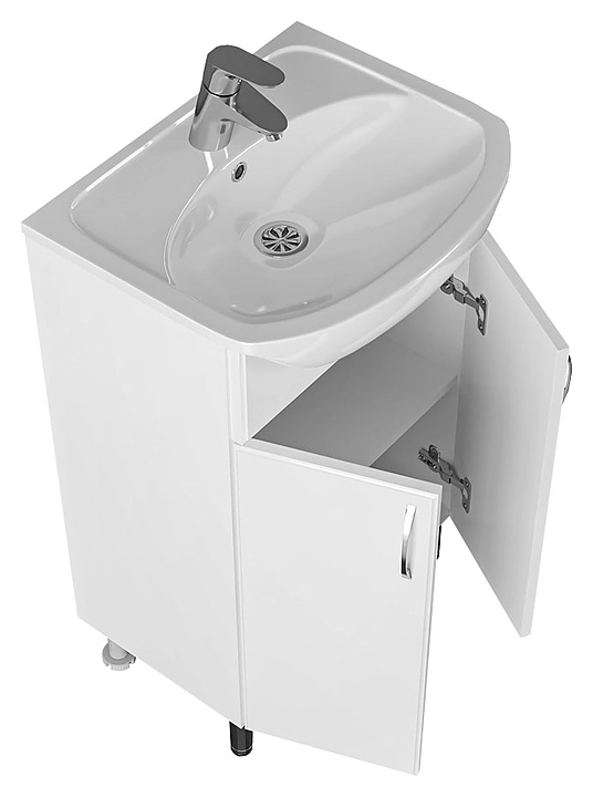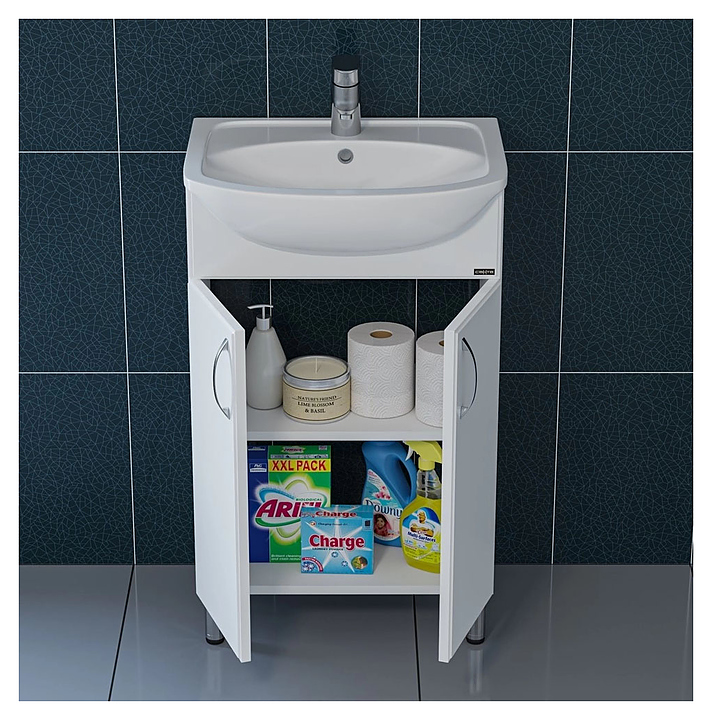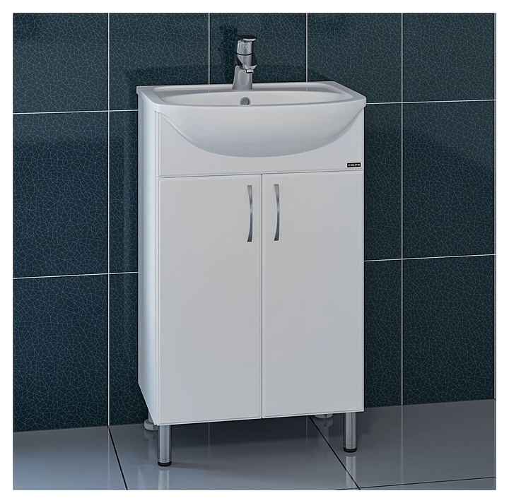 Тумба под раковину СаНта Сити 50 дополнит интерьер ванной комнаты. Модель оснащена 2 распашными дверцами и ножками, защищающими конструкцию от воздействия влаги в случае намокания пола. Корпус выполнен из влагостойкой ЛДСП, фасад - из МДФ и покрыт эмалью для защиты поверхности от внешних воздействий. Тумба используется вместе с раковиной Уют 50. В комплект поставки входят 2 ручки и 4 регулируемые ножки. Особенности: