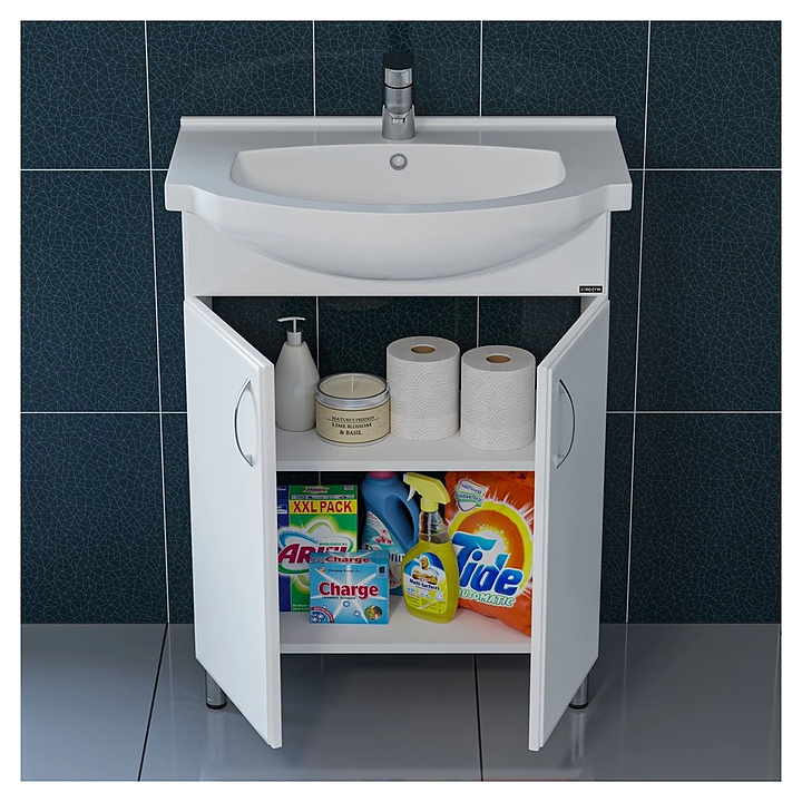 Тумба под раковину СаНта Элеганс 65 дополнит интерьер ванной комнаты. Модель оснащена 2 распашными дверцами и ножками, защищающими конструкцию от воздействия влаги в случае намокания пола. Корпус выполнен из влагостойкой ЛДСП, фасад - из МДФ и покрыт пленкой для защиты поверхности от внешних воздействий. Тумба используется вместе с раковиной Элеганс 65. В комплект поставки входят 1 вкладная полка, 2 ручки, 4 регулируемые ножки. Особенности: