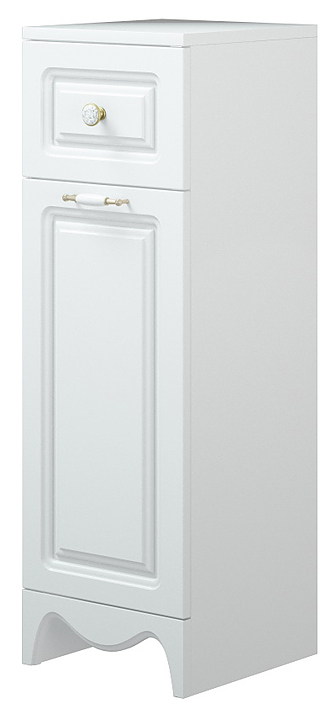 Комод Corozo Классика 30 SD-00000336 выполнен в современном, лаконичном стиле и отлично дополнит интерьер любой ванной комнаты. Модель оснащена небольшим ящиком сверху на шариковых направляющих и откидной бельевой корзиной в нижней части. Напольная конструкция обеспечивает легкий монтаж и не требует специального ремонта в помещении. Крышка, фасады, цоколь выполнены из МДФ в белой глянцевой эмали, а корпус и боковины - ЛДСП и также покрашены в эмаль. Комод может использоваться в составе гарнитура с зеркалами серии Классика. Особенности: