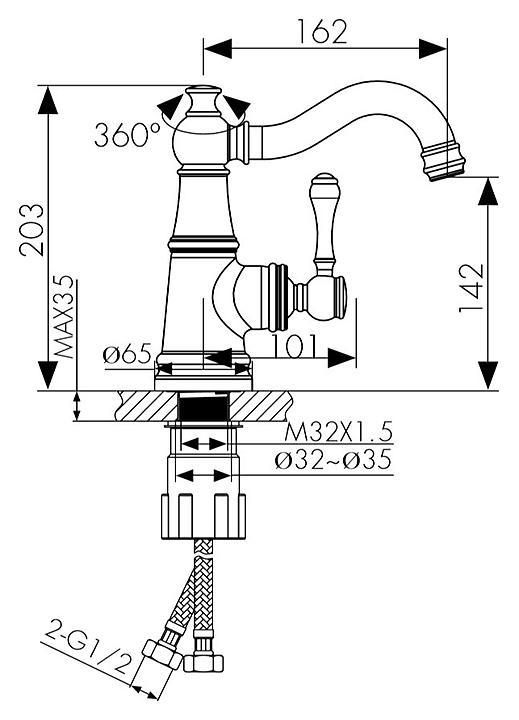 Смеситель Kaiser Aria 03011 предназначен для использования в ванных помещениях для подачи горячей и холодной воды. Модель оснащена керамическим картриджем, обеспечивающим плавный ход рычага смесителя, контроль и точность при выборе напора и температуры воды, а также аэратором для создания мягкой ровной струи без разбрызгивания. Изделие выполнено из высококачественной латуни, отличающейся прочностью, долговечностью и устойчивостью к перепадам температур. В комплект поставки входят аэратор и гибкая подводка. Особенности: