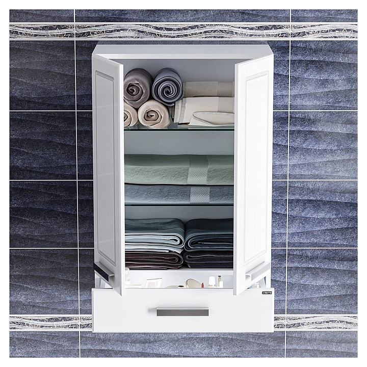 Шкаф СаНта Нептун 60х90 дополнит интерьер ванной комнаты. Благодаря подвесной конструкции модель не занимает много места, что позволяет экономить пространство, а также облегчает уборку. Модель оснащена 2 распашными дверцами, 2 полками и выдвижным ящиком. Корпус выполнен из влагостойкой ЛДСП, фасад - из МДФ и покрыт ПВХ-пленкой для защиты от внешних воздействий. В комплект поставки входят 3 ручки и 2 стеклянные полки. Особенности: