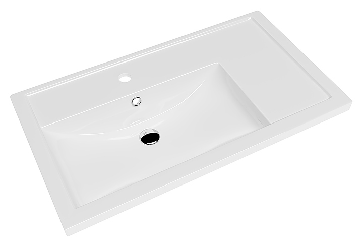 Раковина KIROVIT Фостер 80П выполнена в современном стиле. Встраиваемая конструкция позволяет экономить место в ванной комнате для хранения туалетных принадлежностей. Широкая задняя и боковая правая поверхности позволяют свободно разместить на умывальнике мыльницу, стакан для зубных щеток и другие аксессуары. Изделие выполнено из санфарфора, который обладает повышенной прочностью и устойчивостью к негативным внешним факторам, а так же долгое время сохраняет идеальную белизну и не впитывает запахи и грязь. Раковина приобретается только в комплекте с тумбами Денвер 80 Z2 SD-00000531, Марс 80, Родос 80 и Омега 80 П. В комплект поставки входит хромированное кольцо для переливного отверстия. Особенности:
