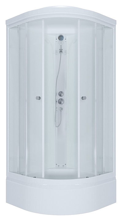 Душевая кабина Triton Ультра 100 Щ0000061825 В предназначена для использования в ванных комнатах. Благодаря угловой конструкции и поддону в форме четверти круга модель можно вписать даже в ванные комнаты небольшой площади. Кабина оснащена 2-х секционными раздвижными дверцами и крышей. Поддон выполнен из акрила, устойчивого к механическим повреждениям и обладающего небольшим весом и повышенной шумоизоляцией. Комплектация: