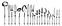 В комплект поставки входят 12 столовых ножей, 12 столовых вилок, 12 столовых ложек, 12 ножей для рыбы, 12 десертных ножей, 12 десертных вилок, 12 чайных ложек, 12 кофейных ложек, 1 сервировочная ложка, 1 ложка для сахара, 1 вилка сервировочная для мяса, 1 вилка сервировочная для рыбы, 1 нож сервировочный для рыбы, 1 лопатка для торта, 1 ложка для соуса, 1 нож для масла, 1 нож для сыра и 1 ложка разливная.