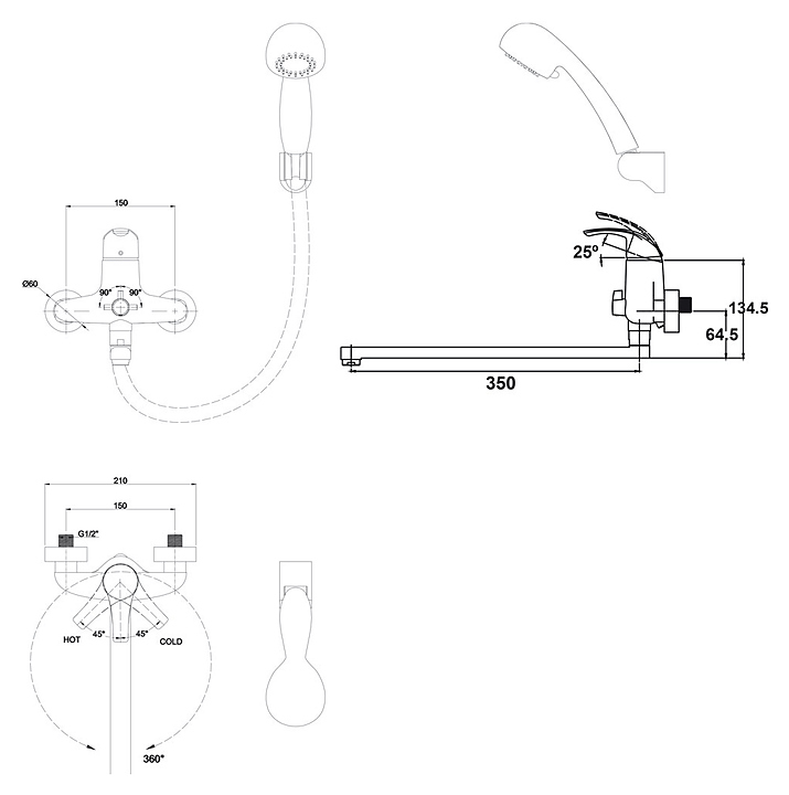 Смеситель Kaiser Nova Betta 23055B предназначен для использования в ванных помещениях для подачи горячей и холодной воды. Модель оснащена керамическим картриджем, обеспечивающим плавный ход рычага смесителя, контроль и точность при выборе напора и температуры воды, а также аэратором для создания мягкой ровной струи без разбрызгивания. Изделие выполнено из высококачественной латуни, отличающейся прочностью, долговечностью и устойчивостью к перепадам температур. В комплект поставки входят аэратор, дивертор, ручная лейка и душевой шланг. Особенности: