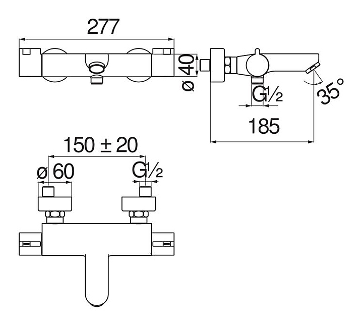 Смеситель для ванны с душем NOBILI ABC AB87010/1CR термостат