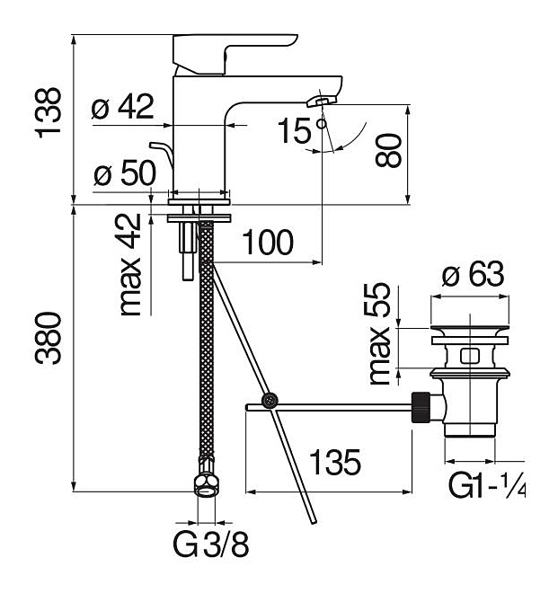 Смеситель для раковины NOBILI ABC AB87118/1CR предназначен для использования в ванных помещениях для подачи горячей и холодной воды. Встроенный аэратор насыщает водный поток воздухом и создает струю без брызг, а также способствует сокращению потребления воды. Модель оснащена системой против известковых отложений для легкого ухода. В комплект поставки входит подводка. Особенности:
