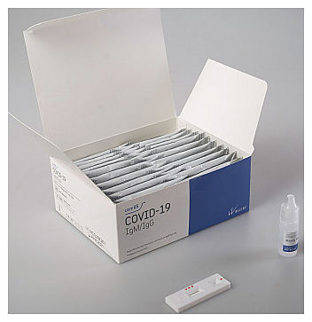 Набор экспресс-тестов WELLS Bio careUS COVID-19 IgG/IgM используется в специальных лабораториях и больницах, а также в домашних условиях наличия антител к коронавирусу в крови в качестве вспомогательного способа выявления болезни. Диагностическая система может применяться как на ранних стадиях болезни, так и в разгар протекания инфекционного процесса.Тест основан на качественном мембранном иммуннохроматографическом анализе и состоит из 2 компонентов, способных с высочайшей точностью определять иммуноглобины типа M и G. В комплект поставки входят 25 тестовых кассет, 25 флаконов с буферным раствором, 25 одноразовых капиллярных пипеток. Особенности: