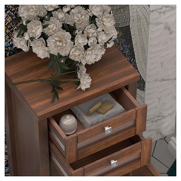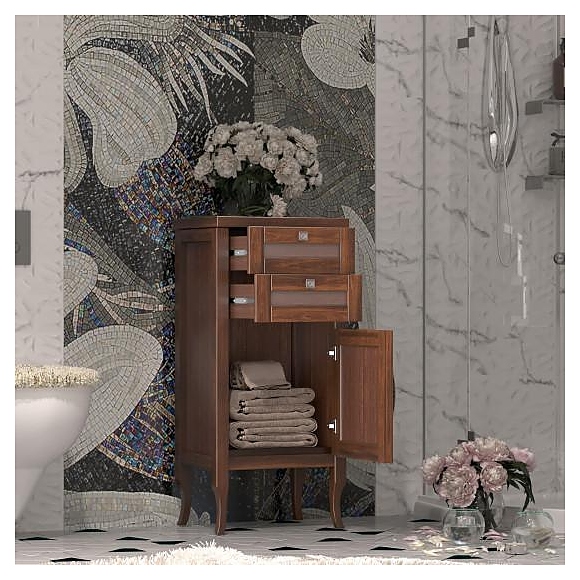 Комод-тумба OPADIRIS Мираж 00-00000048 выполнен в классическом, лаконичном стиле и отлично дополнит интерьер любой ванной комнаты. Модель оснащена распашной фасад-дверцей и 2 небольшими выдвижными ящиками, где удобно хранить необходимые в ванной комнате принадлежности и элементами декора. Напольная конструкция обеспечивает легкий монтаж и не требует специального ремонта в помещении. Корпус изделия выполнен из массива бука и филенки МДФ со шпоном, материал боковых сторон - ЛДСП со шпоном. Комод может использоваться в составе гарнитура для ванной комнаты серии Мираж. Дополнительные характеристики: