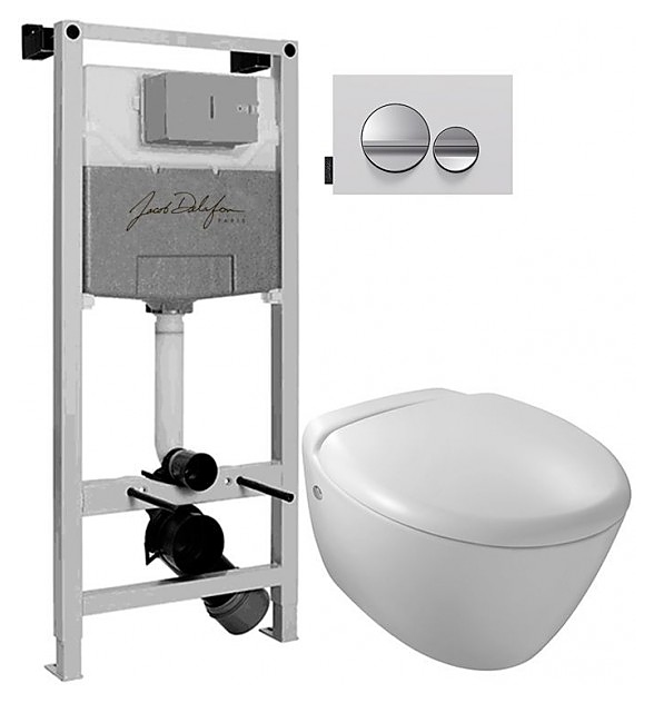 Подвесной унитаз с инсталляцией Jacob Delafon PRESQU'ILE E21743RU-00 дополнит интерьер туалетной комнаты. Благодаря подвесной конструкции модель не занимает много места в помещении, а свободное пространство под чашей делает уборку гораздо легче. Комплектация: