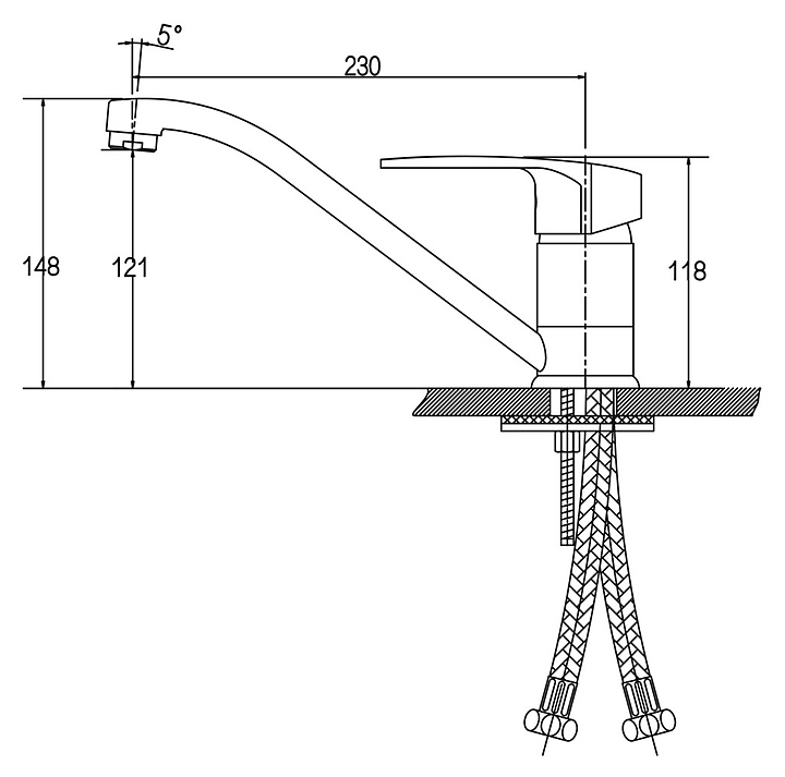 Высота излива 121 мм