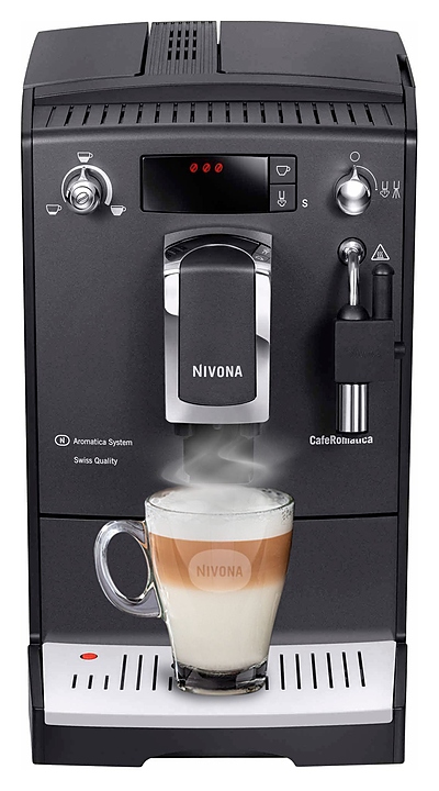 Автоматическая кофемашина Nivona CafeRomatica NICR 520 предназначена для приготовления разнообразных кофейных напитков, таких как эспрессо, латте, капучино в кофейнях, барах и ресторанах. Модель оснащена цифровым символьным диалоговым дисплеем, индикатором уровня воды, защитной крышкой для сохранения аромата и увеличенным резервуаром для воды. Корпус выполнен из ABS-пластика с хромированными вставками, жернова и измельчитель - из закаленной нержавеющей стали. В комплект поставки входят таблетки для очистки, молочная трубка и порционная ложка. Особенности: