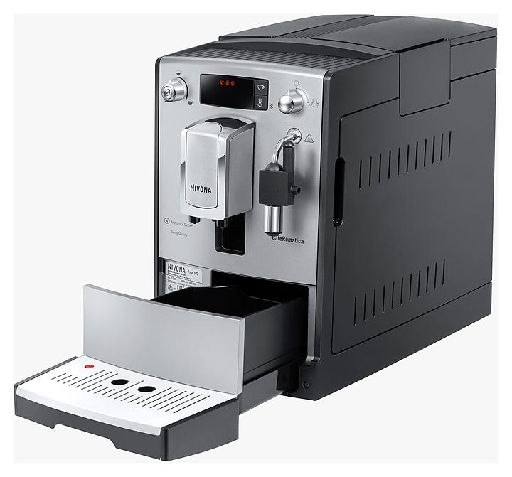 Автоматическая кофемашина Nivona CafeRomatica NICR 530 предназначена для приготовления разнообразных кофейных напитков, таких как эспрессо, латте, капучино в кофейнях, барах и ресторанах. Модель оснащена цифровым символьным диалоговым дисплеем, фильтром для воды Claris, индикатором уровня воды, защитной крышкой для сохранения аромата и увеличенным резервуаром для воды. Корпус выполнен из ABS-пластика с хромированными вставками, жернова и измельчитель - из закаленной нержавеющей стали. В комплект поставки входят таблетки для очистки, молочная трубка и порционная ложка. Особенности: