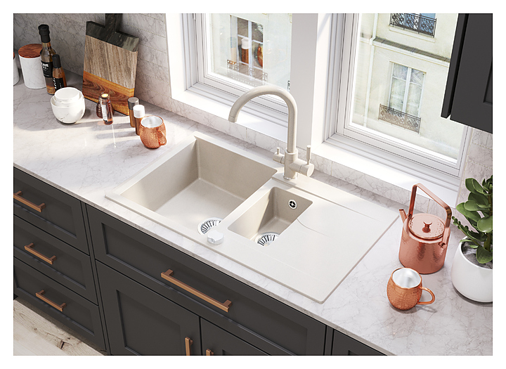 Мойка Polygran Brig-870 предназначена для рационального планирования рабочего места на кухне. Вместительная чаша большого размера и небольшая дополнительная чаша расположены параллельно друг другу. Крыло-сушилка со сливными желобками служит подставкой для посуды и продуктов. Изделие выполнено из гранита, который выдерживает колебания температуры, имеет высокую прочность и стойкость к пищевым и химическим красителям. В комплект поставки входят сифон и набор сливной арматуры с нержавеющим клапаном. Особенности: