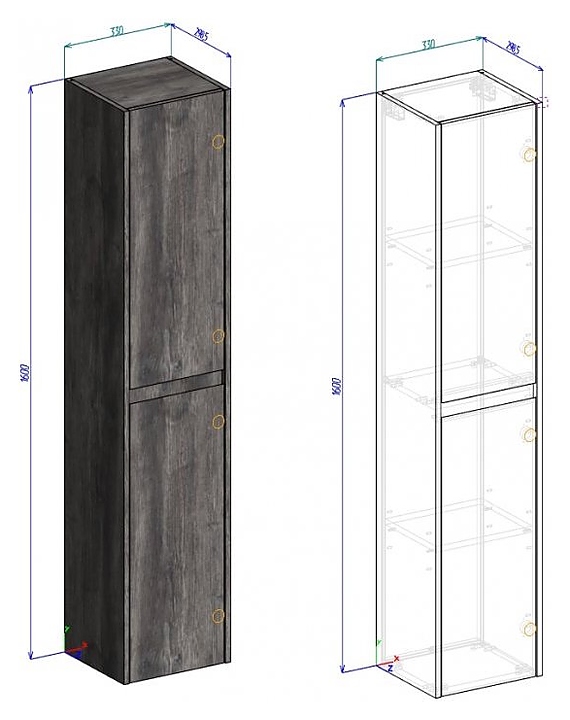 Шкаф подвесной BelBagno KRAFT-1600-2A-SC-PP-R 33x30x160 см правосторонний, сосна пасадена