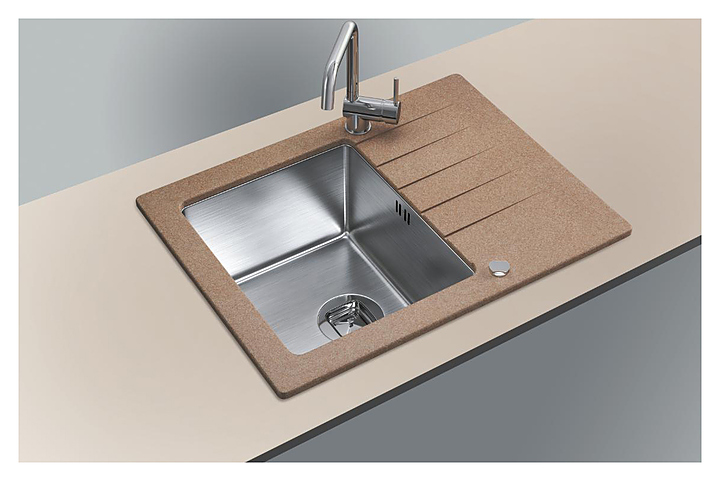 Мойка Tolero Twist TTS-660 предназначена для рационального планирования рабочего места на кухне. Крыло-сушилка со сливными желобками служит подставкой для посуды и продуктов. Рабочая поверхность выполнена из ударопрочного кварца, чаша - из нержавеющей стали, которая способна выдержать высокие механические нагрузки и химические воздействия. Внешний корпус чаши обработан композитным полиуретановым слоем, обеспечивающим шумоизоляцию. В комплект поставки входят сифон и сливная арматура с нержавеющим клапаном. Особенности: