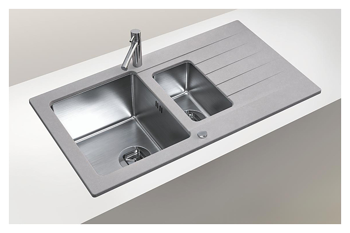 Мойка Tolero TTS-890К предназначена для рационального планирования рабочего места на кухне. Вместительная чаша большого размера и небольшая дополнительная чаша расположены параллельно друг другу. Крыло-сушилка со сливными желобками служит подставкой для посуды и продуктов. Рабочая поверхность выполнена из ударопрочного кварца, чаша - из нержавеющей стали, которая способна выдержать высокие механические нагрузки и химические воздействия. Внешний корпус чаши обработан композитным полиуретановым слоем, обеспечивающим шумоизоляцию. В комплект поставки входят сифон и сливная арматура с нержавеющим клапаном. Особенности: