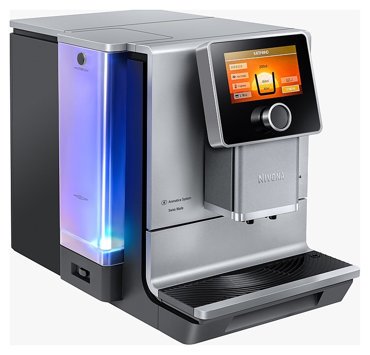 Автоматическая кофемашина Nivona CafeRomatica NICR 970 предназначена для приготовления разнообразных кофейных напитков, таких как эспрессо, латте, капучино в кофейнях, барах и ресторанах. Модель оснащена цветным сенсорным дисплеем с диагональю экрана 5'', встроенным Bluetooth, подсветкой и полочкой для чашек, съемным варочным блоком. Корпус выполнен из ABS-пластика с хромированными вставками, конические жернова и измельчитель - из закаленной нержавеющей стали, подставка для чашек - из нержавеющей стали. В комплект поставки входят фильтр для питьевой воды, прозрачный контейнер для молока, таблетки для очистки, молочная трубка и порционная ложка. Особенности: