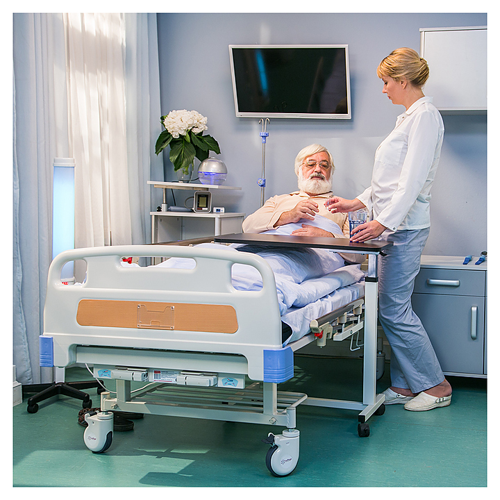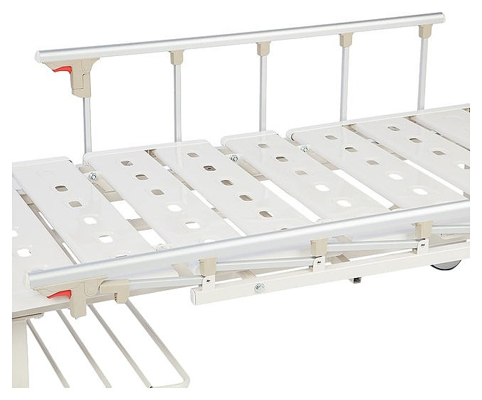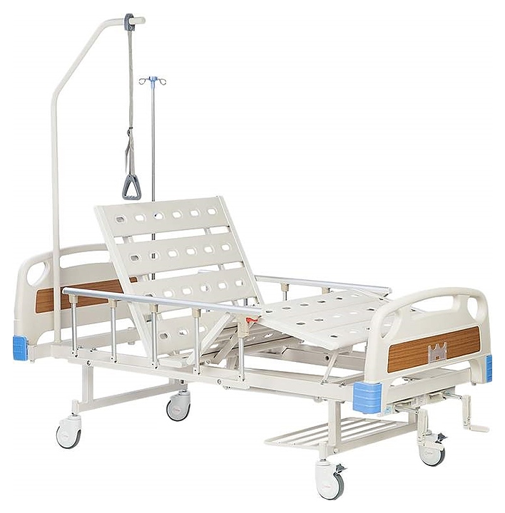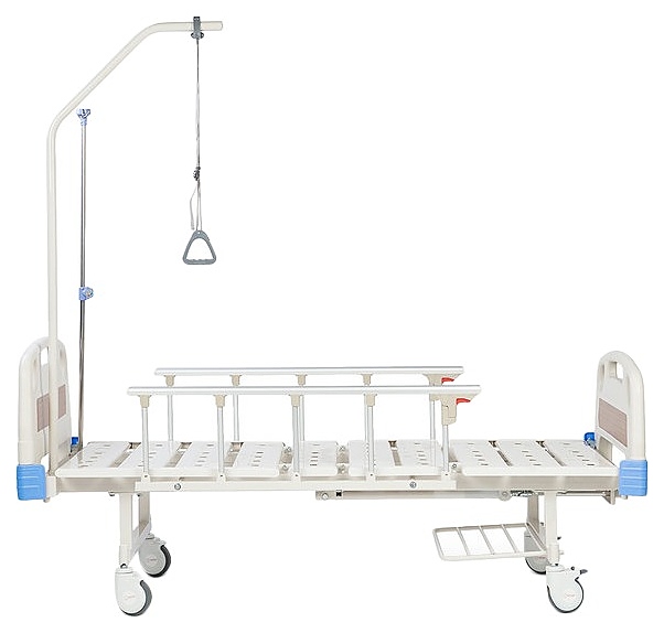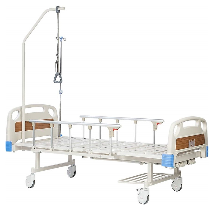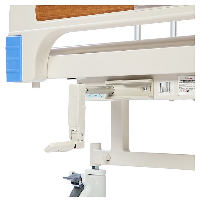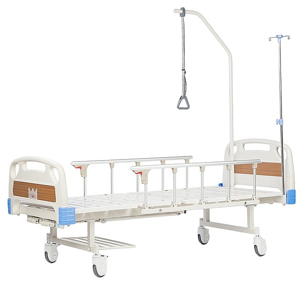 Механическая медицинская кровать Армед SAE-3031 используется в госпиталях, диагностических и реабилитационных центрах, клиниках, санаториях и других медицинских и лечебно-профилактических учреждениях, а также в домашних условиях для комфортного размещения пациента. Модель оснащена анатомическим ложементом с 4 секциями, 2 механическими приводами, 2 складными боковыми ограждениями, 2 съемными торцевыми спинками и устойчивыми опорами на колесах. Каркас и секции ложемента изготовлены из стального профиля с антикоррозийным покрытием эпоксидной эмалью, боковые ограждения – из металла, спинки – из АБС-пластика с декоративными вставками под дерево. В комплект поставки входят инфузионная стойка, штанга для подтягивания, подставка для судна и набор крепежа. Особенности: