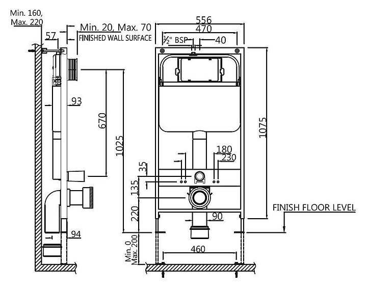 Система инсталляции с бачком Jaquar Cistern JCS-WHT-2400FS предназначена для установки подвесных унитазов. Особенности: