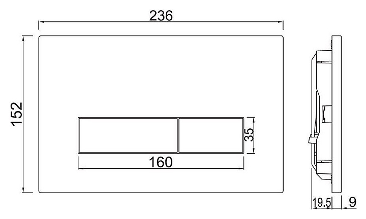 Кнопка смыва Jaquar Kubix JCP-CHR-352415 предназначена для использования с инсталляцией для унитаза Cistern JCS-WHT-2400FS. Аксессуар прямоугольной формы с двумя прямоугольными клавишами, непосредственно приводящими в действие экономный механизм большого и малого смыва для рационального расхода воды. Дополнительные характеристики: