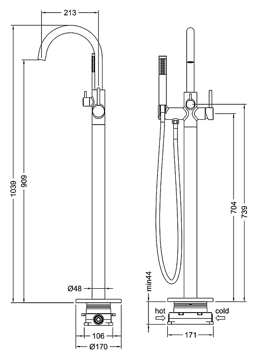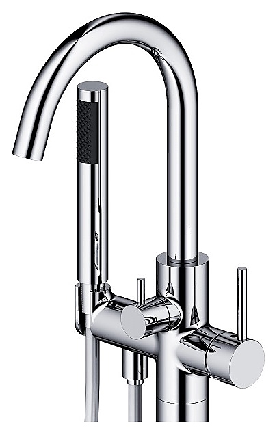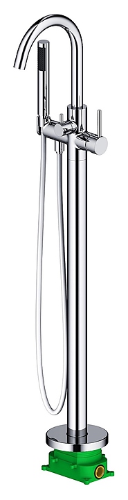 Напольный смеситель для ванны с душем TIMO Saona 2310/00Y-CR предназначен для использования в ванных помещениях для подачи горячей и холодной воды. Серия выполнена в современном стиле. Модель оснащена душевым гарнитуром, включающим в себя однорежимную ручную лейку и полутораметровый душевой шланг. Изделие выполнено из высококачественной латуни, отличающейся прочностью, долговечностью и устойчивостью к перепадам температур. В комплект поставки входят корпус смесителя, труба смесителя, гибкая подводка, декоративный отражатель, фиксатор, крепежные винты, ручная лейка и душевой шланг. Особенности: