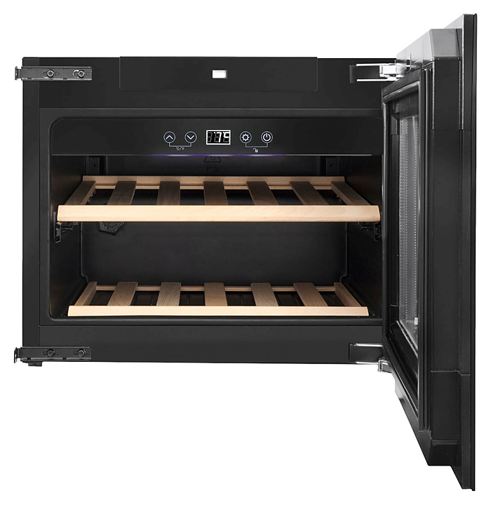Встраиваемый винный шкаф CASO WineDeluxe E 18 предназначен для охлаждения и длительного хранения бутилированного вина в частных домах, квартирах, отелях и офисах. Модель оснащена сенсорной панелью управления cо светодиодным индикатором температуры и 2 съемными деревянными выдвижными полками с шарикоподшипниками. Дверца выполнена из 3-х слойного стекла с ультрафиолетовым фильтром. Особенности: