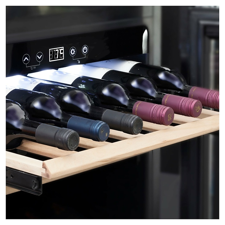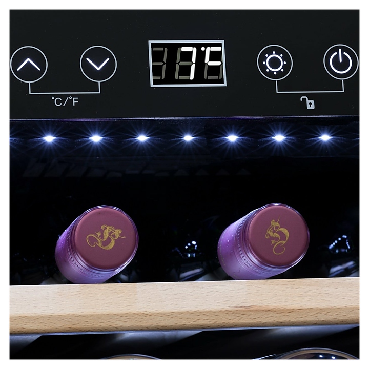 Встраиваемый винный шкаф CASO WineDeluxe E 29 предназначен для охлаждения и длительного хранения бутилированного вина в частных домах, квартирах, отелях и офисах. Модель оснащена сенсорной панелью управления cо светодиодным индикатором температуры и 3 съемными деревянными полками 2 из которых выдвижные с шарикоподшипниками и 1 с возможностью наклона для демонстрации бутылок. Дверца выполнена из 3-х слойного стекла с ультрафиолетовым фильтром. Особенности: