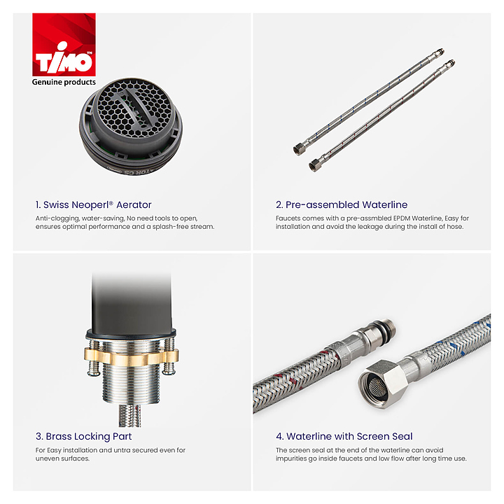 Смеситель для раковины TIMO Torne 4311/03F предназначен для использования в ванных помещениях для подачи горячей и холодной воды. Серия выполнена в современном стиле. Модель оснащена керамическим картриджем, обеспечивающим плавный ход рычага смесителя, контроль и точность при выборе напора и температуры воды, а также аэратором для создания мягкой ровной струи без разбрызгивания. Изделие выполнено из высококачественной латуни, отличающейся прочностью, долговечностью и устойчивостью к перепадам температур. В комплект поставки входят крепления, аэратор и гибкая подводка. Особенности: