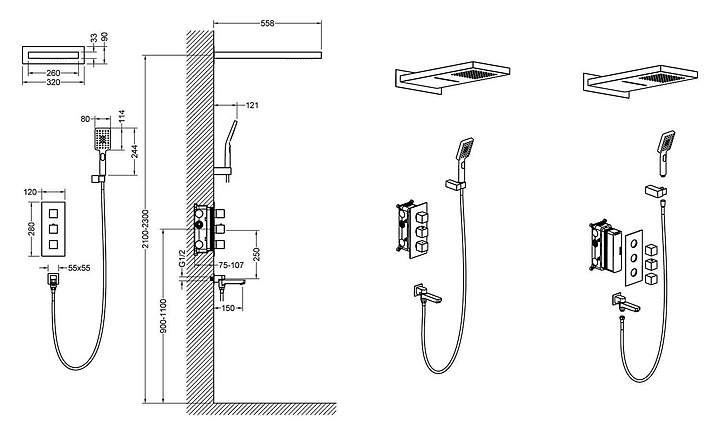 Душевой комплект TIMO Petruma SX-5079/00SM предназначен для использования в ванных помещениях. Серия выполнена в современном стиле. Модель оснащена поворотным изливом, квадратным верхним душем с режимами "Каскад" и "Тропический дождь", а также трехрежимной ручной лейкой с душевым шлангом. Изделие выполнено из высококачественной латуни, отличающейся прочностью, долговечностью и устойчивостью к перепадам температур. В комплект поставки входят смеситель с монтажной коробкой, тропический душ, крепежные углы для тропической лейки, подводка к тропической лейке, ручная лейка, держатель ручной лейки, декоративная накладка смесителя, ручка дивертора, ручка управления смесителем, излив поворотный с подключением душа, душевой шланг и отвод из стены. Особенности: