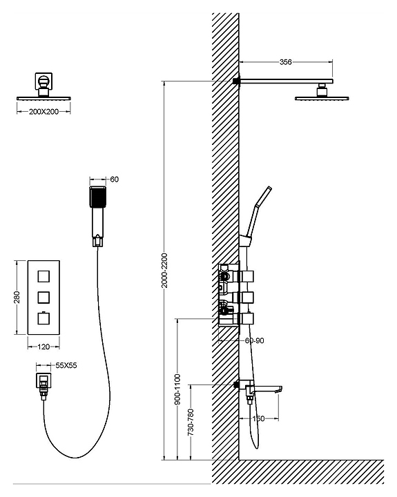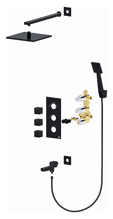 Комплект душевой TIMO Tetra-Thermo SX-0199/03SM с термостатом, черный матовый