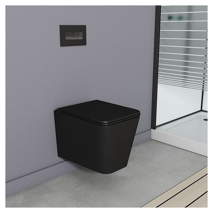 Подвесной унитаз OWL Vatter Ruta-H Matt Black OWLT190404 выполнен в современном стиле и за счет своего элегантного дизайна легко впишется в любой интерьер. Благодаря подвесной конструкции унитаз не занимает много места в помещении, а свободное пространство под чашей делает уборку в ванной комнате гораздо легче. Безободковое исполнение позволяет предотвратить скопление бактерий и грязи на внутренней поверхности чаши и обеспечивает ее чистоту и гигиеничность использования. Модель оснащена быстросъёмным сиденьем с механизмом микролифта, который не дает сиденью резко опускаться, обеспечивая бесшумное использование, и предотвращает появление трещин, царапин и сколов на изделии. Изделие выполнено из фарфора, который обладает повышенной прочностью и устойчивостью к негативным внешним факторам, а так же способен долгое время сохранять идеальную белизну, сиденье - из дюропласта. В комплект поставки входят сиденье с микролифтом и монтажный набор. Инсталляция в комплект поставки не входит и приобретается отдельно. Особенности: