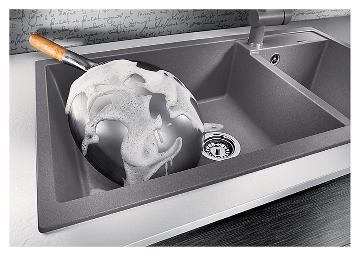 Благодаря большой вместительности чаш мойка Blanco Metra 9 обеспечивает оптимальное использование рабочего пространства. Основная чаша непривычно большого размера создает комфортные условия для мытья большой посуды. Вместительная дополнительная чаша еще больше расширяет рабочую зону. Просторная площадка для смесителя может использоваться для хранения дополнительных аксессуаров и кухонных принадлежностей. Для изготовления мойки используется инновационный материал SILGRANIT PuraDur II, обеспечивающий удивительную легкость в уходе за поверхностью. В комплектацию входят стоп-вентиль и крепление. Дополнительные характеристики: