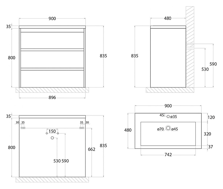 Тумба под раковину Art&Max Family-900-3C-PIA-BL выполнена в современном стиле и прекрасно впишется в интерьер любой ванной комнаты. Напольная конструкция обеспечивает легкий монтаж и не требует специального ремонта в помещении. Модель оснащена тремя выдвижными ящиками с доводчиками. Фасад изделия выполнен из ЛДСП. Тумба может использоваться вместе с раковиной AM-LAV-900-MR-A. Раковина и смеситель в комплект поставки не входят и приобретаются отдельно. Особенности: