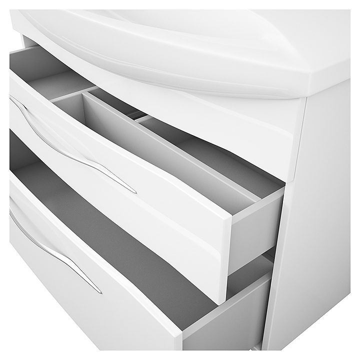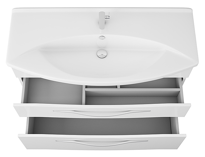 Гарнитур OWL Vessla Stor 105 выполнен в современном стиле. Комплект состоит из тумбы под раковину Vessla stor 105 OW22.14.00, раковины Dreja Laguna 105 191683, зеркала Roxen OWLM200103, полупенала Vessla 35 OW22.06.00, пенала Vessla 35 OW22.05.00 и комплект опор OW99.00.01. Тумба оснащена 2 ящиками полного выдвижения с системой разделения пространства, зеркало - LED-подсветкой, раковина имеет слив-перелив и отверстие для смесителя по центру, пенал - распашные фасад-дверцы со стеклянными полками внутри. Благодаря подвесной конструкции изделие не занимает много места и обеспечивает легкую уборку в ванной комнате. Корпус мебели выполнен из ЛДСП, фасады - высококачественной МДФ белого цвета, ручки - хромированная латунь, раковина - из санфарфора, который обладает повышенной прочностью и устойчивостью к негативным внешним факторам, а так же способен долгое время сохранять идеальную белизну. Особенности: