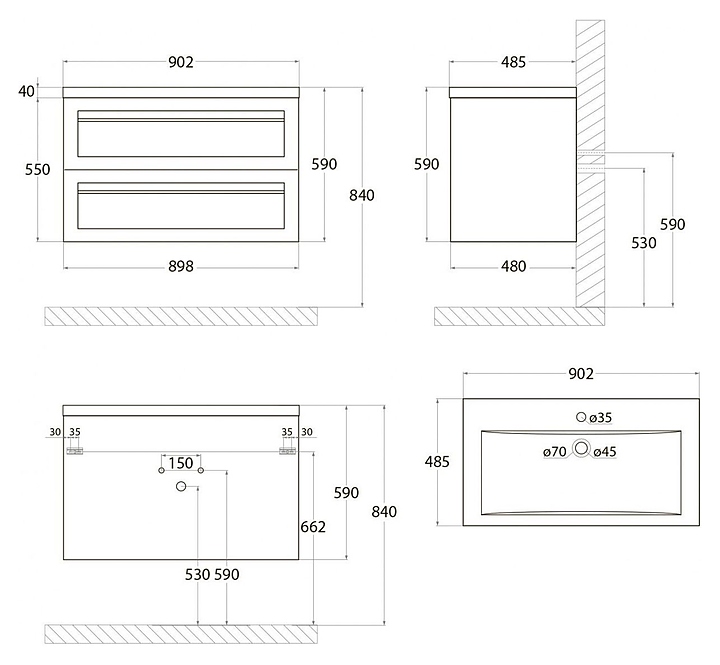 Тумба под раковину Art&Max AM-Platino-900-2C-SO-GM выполнена в современном стиле и прекрасно впишется в интерьер любой ванной комнаты. Благодаря подвесной конструкции изделие не занимает много места, позволяет экономить пространство и облегчает уборку. Модель оснащена двумя выдвижными ящиками с доводчиками. Фасад изделия выполнен из МДФ. Тумба может использоваться вместе с раковиной AM-LAV-900-MR-A. Раковина и смеситель в комплект поставки не входят и приобретаются отдельно. Особенности:
