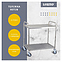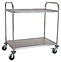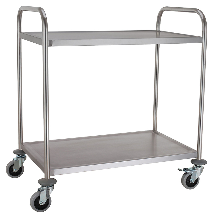 Тележка VIATTO RST2B используется на предприятиях общественного питания для перемещения готовых блюд, напитков и посуды в зал приема пищи, а также для подачи грязной посуды из зала в моечное отделение.. Модель оснащена 2 вместительными полками и 4 поворотными колесами, 2 из которых снабжены стопорами. Каркас выполнен из круглой трубы нержавеющей стали. Допоxлнительные характеристики: