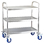 Тележка VIATTO RST3B используется на предприятиях общественного питания для перемещения готовых блюд, напитков и посуды в зал приема пищи, а также для подачи грязной посуды из зала в моечное отделение.. Модель оснащена 2 вместительными полками и 4 поворотными колесами, 2 из которых снабжены стопорами. Каркас выполнен из круглой трубы нержавеющей стали. Допоxлнительные характеристики: