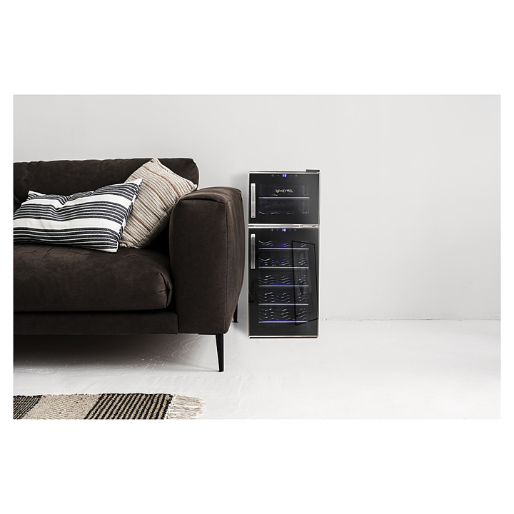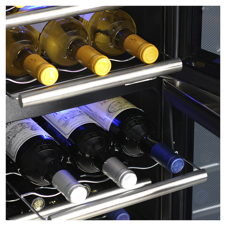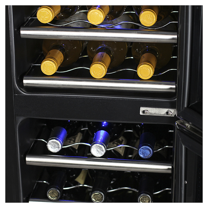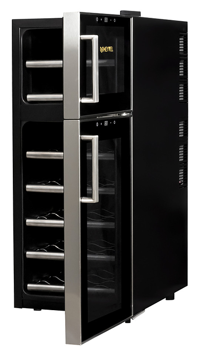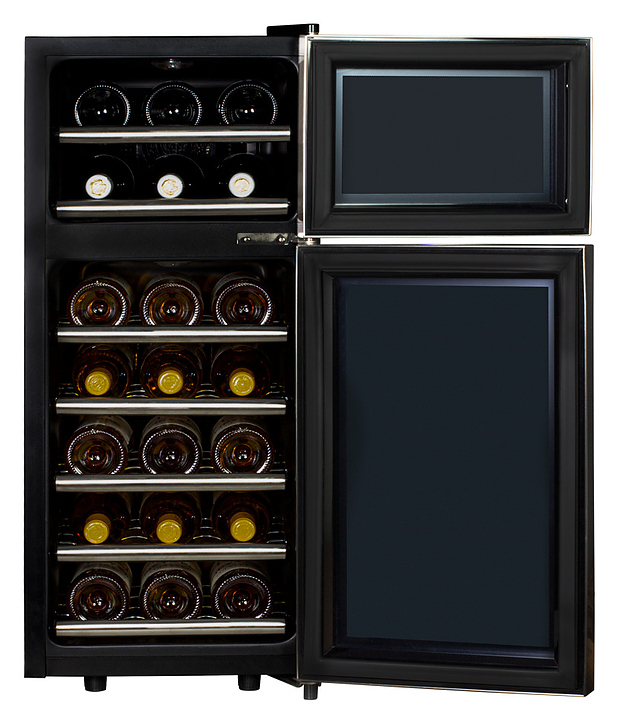 Винный шкаф MEYVEL MV21-BF2 (easy) предназначен для демонстрации, хранения и создания оптимальных условий для сохранения всех вкусовых свойств вина в бутылках на предприятиях общественного питания, торговли, в барах, ресторанах, специализированных магазинах, частных домах или квартирах. Модель оснащена электронной панелью управления, электронным термостатом и светодиодной подсветкой. Корпус выполнен из окрашенной в черный цвет стали, дверь - из стальной окантовки и двойного стекла с защитой от ультрафиолетовых лучей, ручка двери - из стали, полки - из хрома. Особенности: