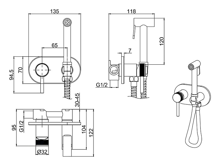 Смеситель для биде Allen Brau Priority 5.31005-BN предназначен для использования в ванных помещениях для подачи горячей и холодной воды. Модель оснащена душевой лейкой с нажимным механизмом и прочным шлангом. Изделие выполнено из высококачественной латуни, отличающейся прочностью, долговечностью и устойчивостью к перепадам температур. В комплект поставки входят скрытая монтажная часть, шланг, держатель для душа, гигиенический душ. Особенности: