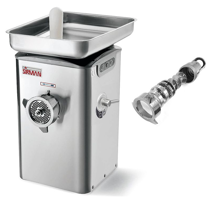Мясорубка Sirman TC 22 BARCELLONA T 1/2UNGER предназначена для измельчения мяса и рыбы на фарш, повторного измельчения котлетной массы и набивки колбас на предприятиях общественного питания и торговли. Модель оснащена системой вентиляции мотора, обеспечивающей защиту от перегрева и монофазным двигателем с термической защитой. Корпус, горловина и шнек выполнены из нержавеющей стали. В комплект поставки входят подрезная решетка, двусторонний нож, решетка и пластиковый толкатель. Особенности: