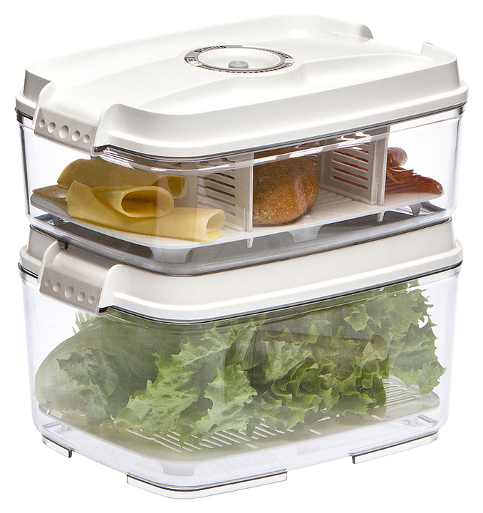 Набор вакуумных контейнеров Status VAC-REC-Bigger используется совместно с вакуумными упаковщиками, поддерживающими подключение вакуумного шланга, или с ручным насосом для упаковки продуктов в частных домах и квартирах для последующего их хранения. В набор входят 2 контейнера прямоугольной формы разных размеров с крышками, 2 поддона для капель с разделительными вставками и ручной насос. Контейнеры выполнены из тритана, не содержащего бисфенол А, крышки - из ABS-пластика, поддоны - из полипропилена. Особенности: