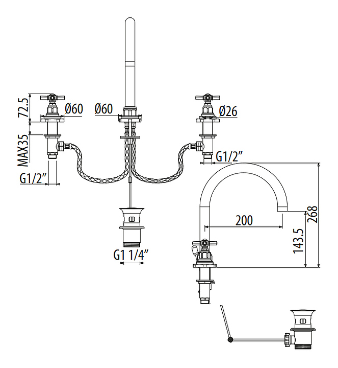 Смеситель для раковины Gattoni TRD TR097/18D0 предназначен для использования в ванных помещениях для подачи горячей и холодной воды. Серия TRD дополнит интерьер ванной комнаты. В комплект поставки входит донный клапан. Особенности: