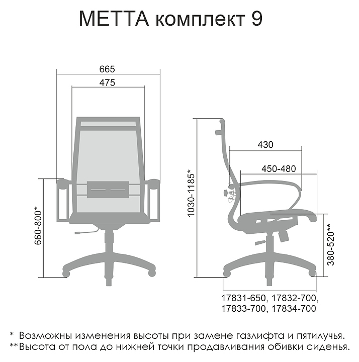 Кресло Метта Комплект 9 предназначено для долгой работы за компьютером на даче, дома, а также в офисах. Модель оснащена низкой спинкой и комфортным сиденьем. Сверхпрочный каркас кресла и регулируемый поясничный подпор изготовлены из стали с полимерным покрытием черного цвета, обивка - из износостойкой обивочной сетчатой ткани. Пятилучье в комплект поставки не входит и приобретается отдельно. Особенности: