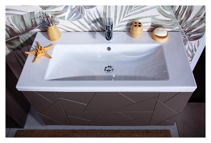 Тумба под раковину БРИКЛАЕР Кристалл 100 см без ниши, подвесная, ясень анкор темный, софт графит