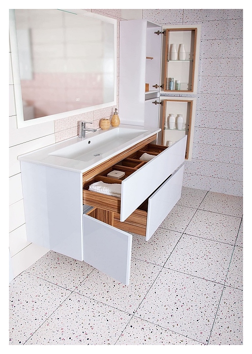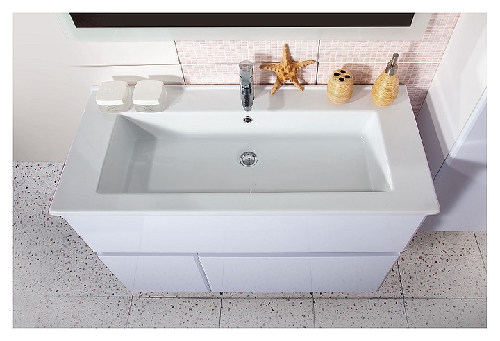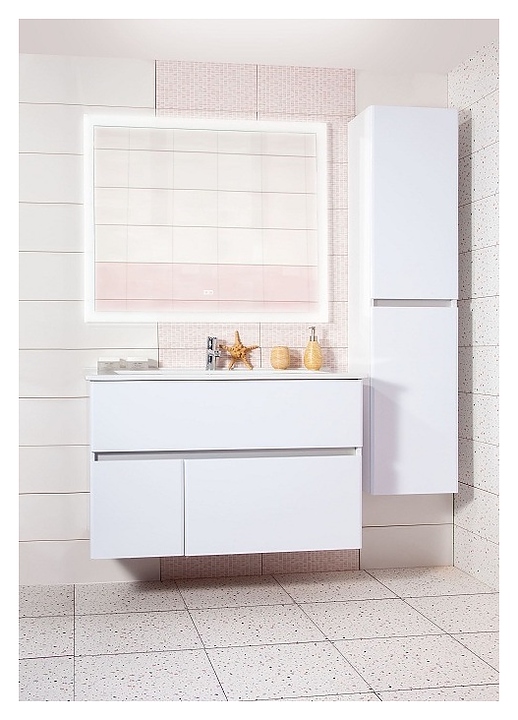 Тумба под раковину БРИКЛАЕР Мальта 105 см подвесная, белый глянец