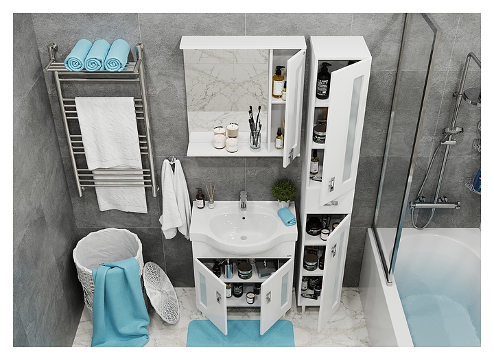 Тумба под раковину Onika КРИСТАЛЛ 70.18 дополнит интерьер ванной комнаты. Модель оснащена 2 распашными дверцами с системой плавного закрывания и ножками, защищающими конструкцию в случае намокания пола. Корпус выполнен из ЛДСП, фасад - из МДФ в пленке, устойчивой к механическим воздействиям, перепадам температур и высокой влажности. Тумба используется вместе с раковиной Cersanit ERICA 70. В комплект поставки входят 2 ручки, 2 декоративные и 2 пластиковые ножки. Особенности:
