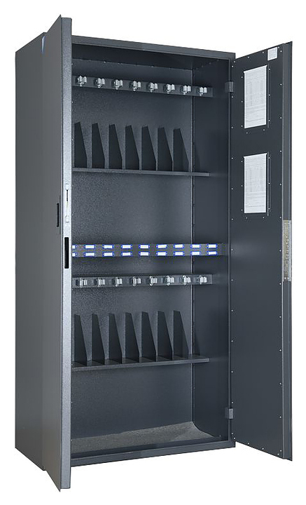 Сейф Меткон ОШ-20АКМ предназначен для хранения оружия, патронов и принадлежностей. Модель оснащена полкой, ковриком, ключевым сувальдным тяговым и ключевым сувальдным 2-го класса замками. Ложементы выполнены из металла с резиновыми роликами. Дополнительные характеристики: