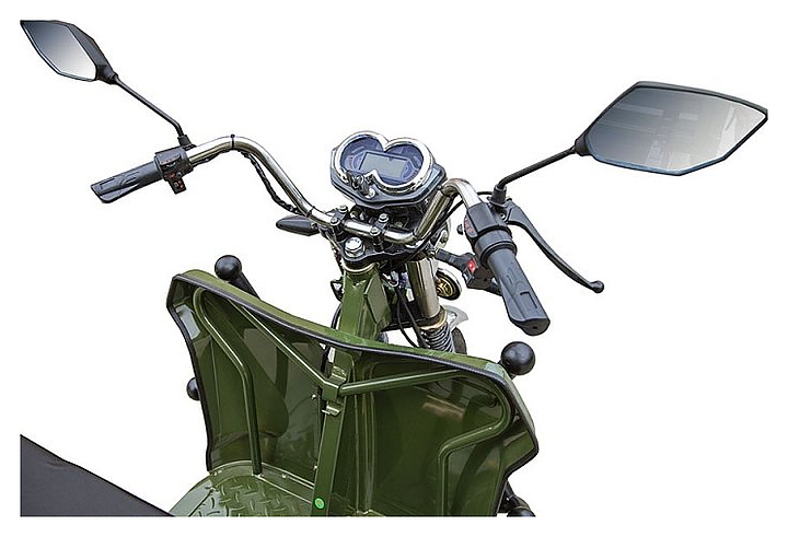 Грузовой электроцикл Rutrike D4 NEXT 1800 60V1200W используется для работы на складах, промышленных предприятиях, для обслуживания больших территорий, отелей, эко-парков и природных зон. Модель оснащена полностью герметичным тяговым бесщеточным двигателем, c силовыми шестернями редуктора, который имеет свободный дифференциал и установлен в неразрезной мост с усиленными полуосями. Аккумуляторные батареи в комплект поставки не входят и приобретаются отдельно. Внимание! Данная конструкция не предусмотрена для фиксации кузова в поднятом положении, а лишь для облегчения его подъёма! Особенности: