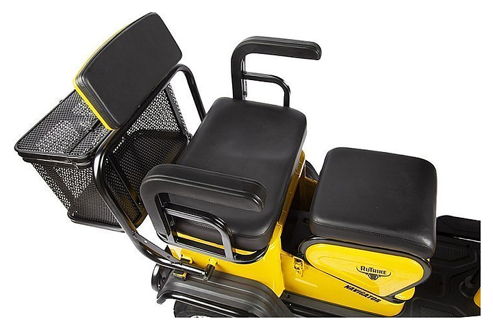 Трицикл Rutrike Навигатор используется для комфортного загородного передвижения вдвоем и перевозки бытовых грузов. Модель оснащена надежным электромотором и трансформирующейся конструкцией (заднее сиденье опрокидывается, образуя удобную мягкую спинку с подголовником). Аккумуляторы в комплект поставки не входят и приобретаются отдельно. Особенности: